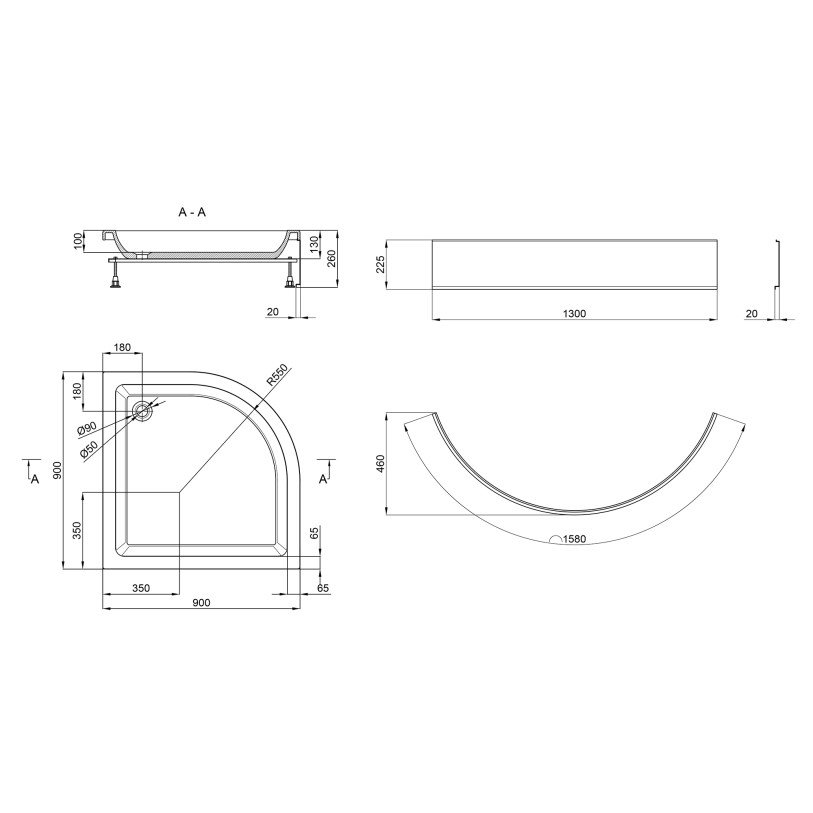 | Форма | Четверть круга |