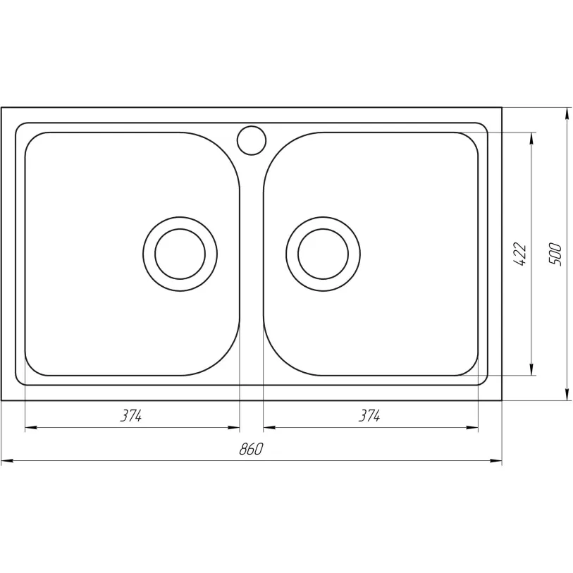 Гранитная мойка Globus Lux MALAREN черный металлик 860х500мм-А0001