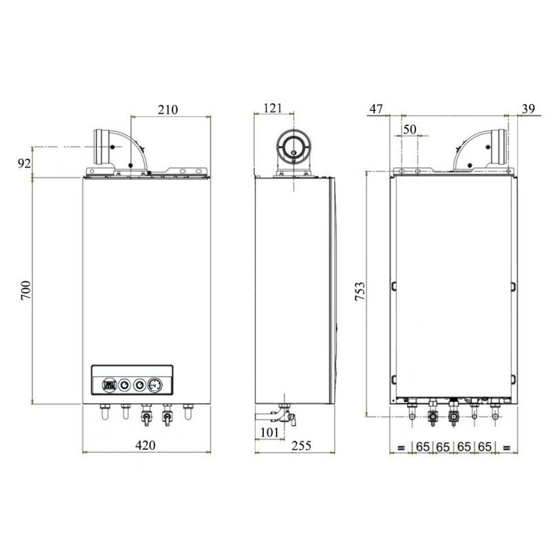 | Диаметр подключения дымохода, мм | 60/100 |