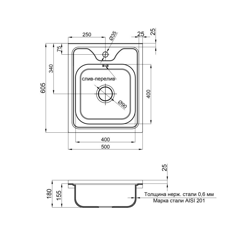| Комплектация | Мойка, сифон, слив/перелив. |