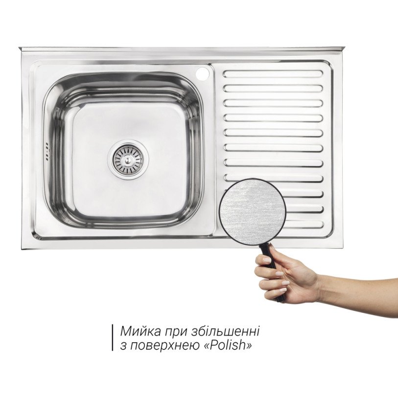 Кухонная мойка Lidz 5080-L 0,8 мм Polish (LIDZ5080LPOL08) изготовлена из нержавеющей стали пищевой марки, поэтому изделие прослужит долгие годы. Так же стоит отметить исключительный дизайн который украсит любую кухню. Отменное качество и дизайн мойки позволят удовлетворить самые высокие требования! Мойка выполнена с рабочей чашей, крылом для сушки посуды и разморозки продуктов, отверстием под смеситель. Монтируется накладным способом в отверстие в столешнице.
