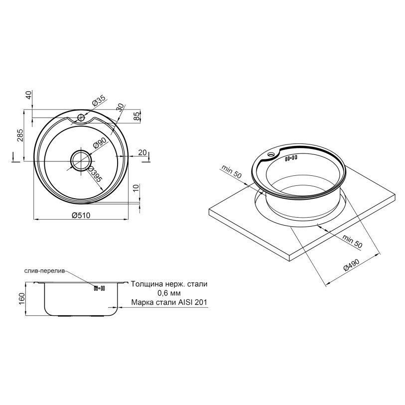 Кухонная мойка Lidz 510-D 0,6 мм Decor изготовлена из высококачественной нержавеющей стали пищевой марки, поэтому изделие прослужит долгие годы. Так же стоит отметить исключительный дизайн который украсит любую кухню. Отменное качество и дизайн мойки позволят удовлетворить самые высокие требования и создать уют в вашем доме! Мойка выполнена с рабочей круглой чашей и отверстием под смеситель. Монтируется врезным способом в отверстие в столешнице. Поверхность - матовая, гладкая, быстро моется.