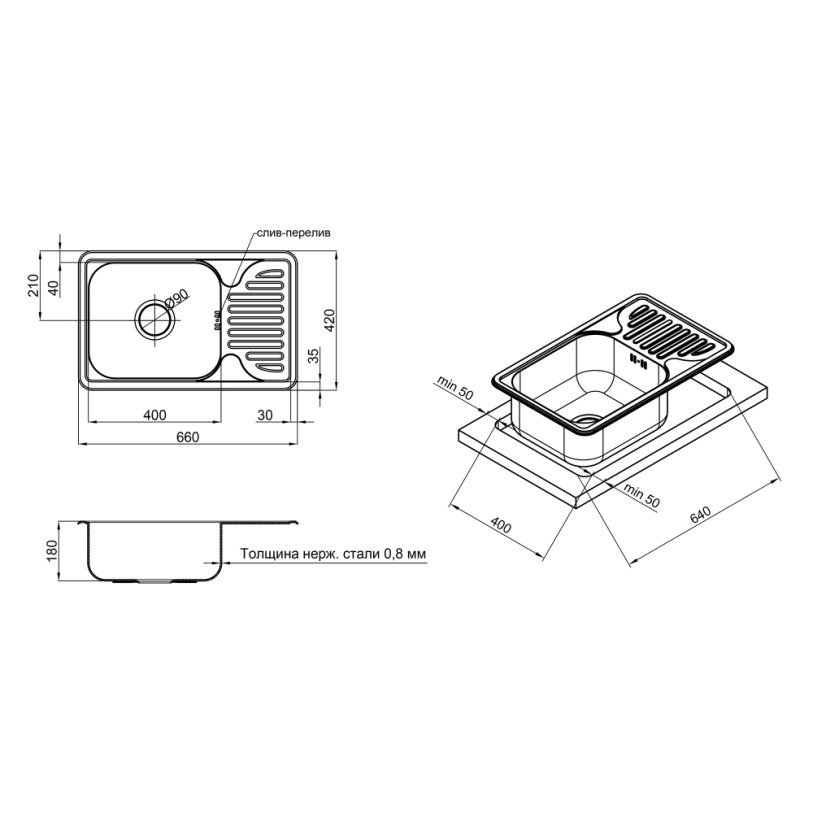 | Наличие перелива | Есть |