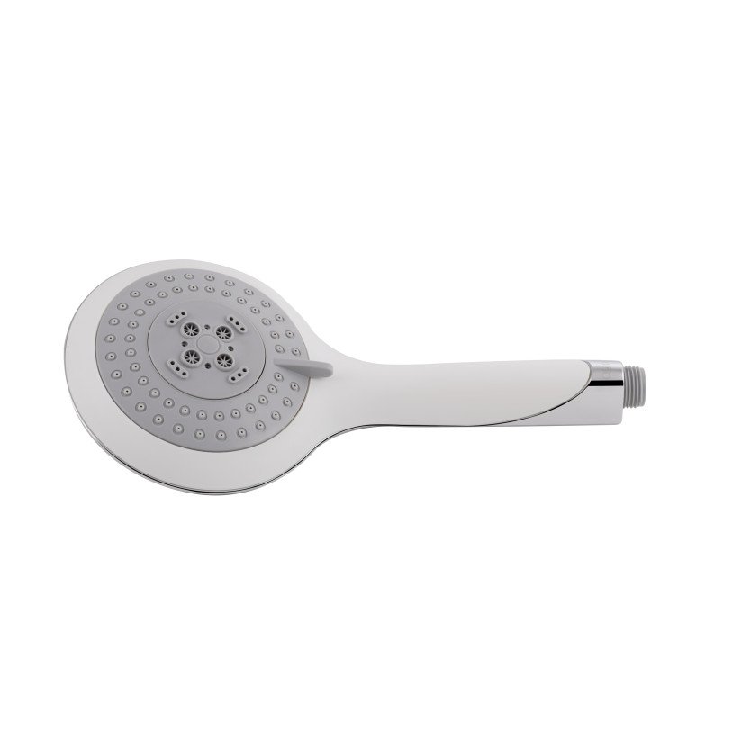 Лейка для ручного душа Qtap Rucni A128O5PCW изготовлена из прочного пластика со стильным белым покрытием с хромированными вставками. Такое покрытие не боится гидроударов и перепада температур, а также не отслоится от чистящих средств. Для подключения к душевому шлангу есть подвод с внешней резьбой. Благодаря универсальному диаметру подключения лейка совместима со всеми шлангами для душа. В изделии предусмотрен 5 режимов струи.