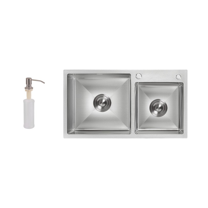 Набор 2 в 1 Lidz кухонная мойка H7843 3.0/1.0 мм Brush + дозатор для моющего средства - комплексно решит проблему обустройства моечной зоны. Набор включает в себя стильную прямоугольную кухонную мойку с двумя чашами, изготовленную из прочной нержавеющей стали и дозатор для моющего средства. Интегрированная мойка имеет три варианта установки - заподлицо со столешницей, над столешницей (аналогично врезным мойкам) и под ней.