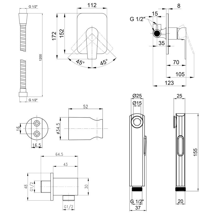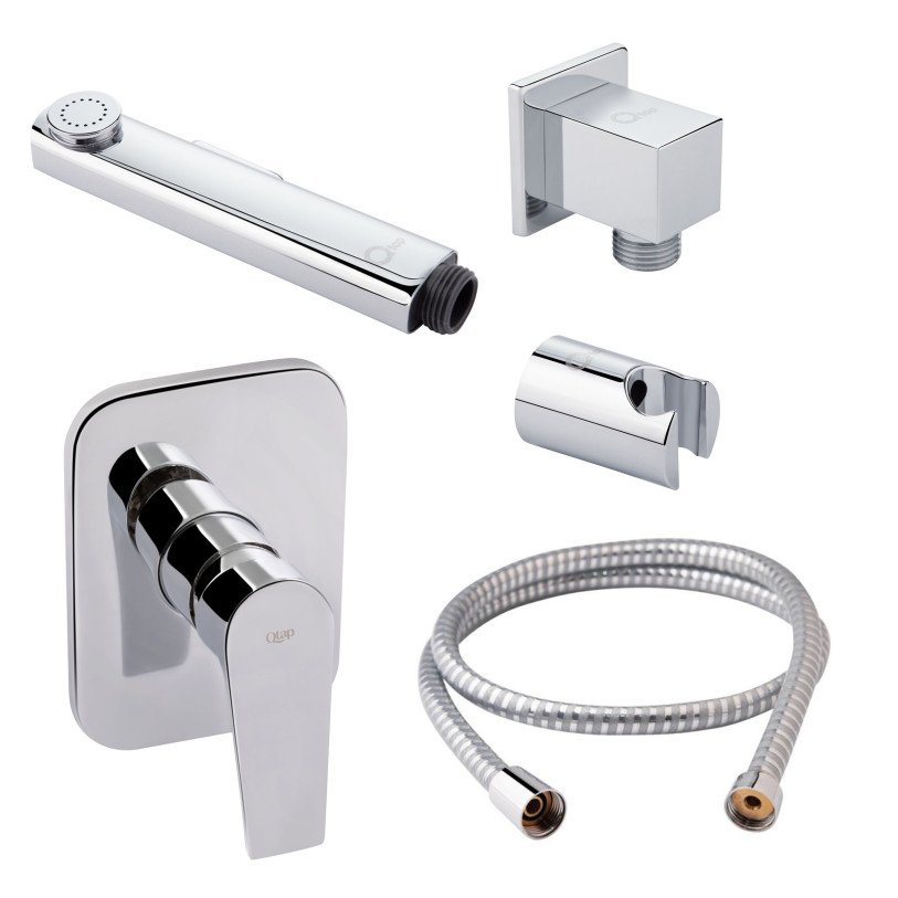 | Комплектация | Лейка для гигиенического душа, смеситель скрытого монтажа, кронштейн для гигиенического душа, шланговое подсоединение, душевой шланг, крепежи. |