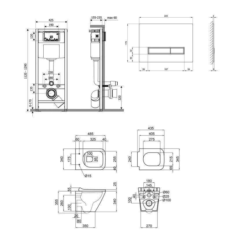 Набор Qtap инсталляция 4 в 1 с панелью смыва Nest (QT0133M425 + QT0111V1105GW) + унитаз с сиденьем Tern QT1733052ERW