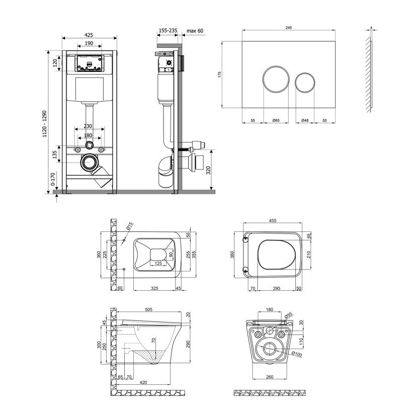 Набор Qtap инсталляция 4 в 1 с панелью смыва Nest (QT0133M425 + QT0111V1164GW) + унитаз с сиденьем Gemini QT25332614EW