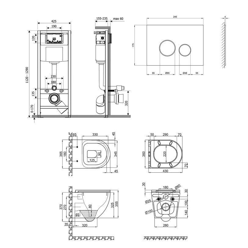 Набор Qtap инсталляция 4 в 1 с панелью смыва Nest (QT0133M425 + QT0111V1164GW) + унитаз с сиденьем Robin QT1333046ERW