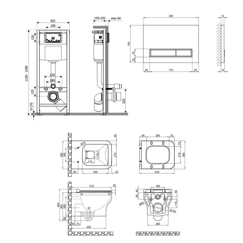 Набор Qtap инсталляция 4 в 1 с панелью смыва Nest (QT0133M425 + QT0133M425) + унитаз с сиденьем Cardinal QT0333063ERW
