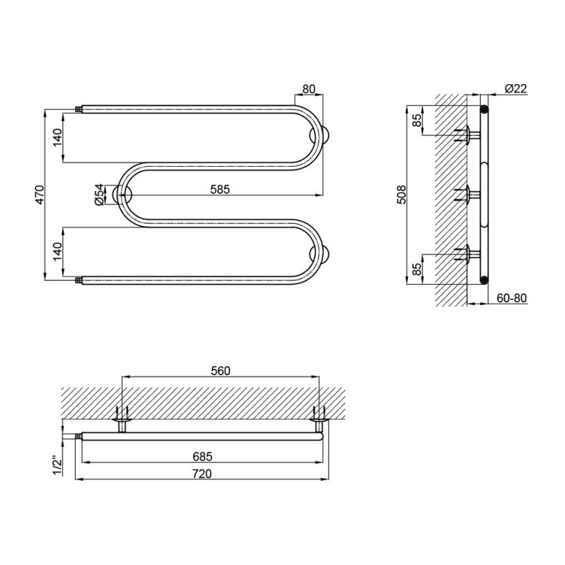 | Комплектация | Полотенцесушитель, комплект креплений (дюбель-гвоздь - 3 шт.; втулка крепежная - 3 шт.; гайка - 3 шт.; винт установочный - 3 шт.; блюдце декоративное - 3 шт.; ключ шестигранный - 1 шт.) |