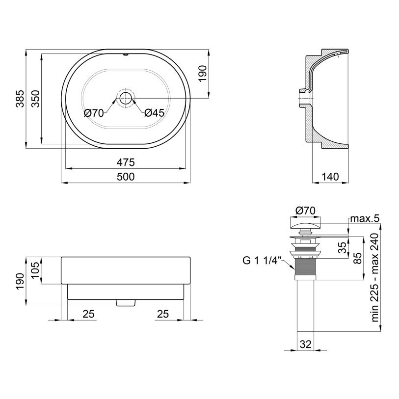 | Комплектация | Раковина, донный клапан. |