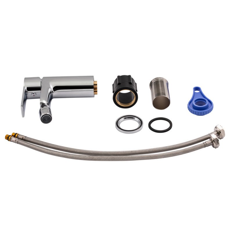 | Комплектация | Смеситель, гибкая подводка, крепежи. |