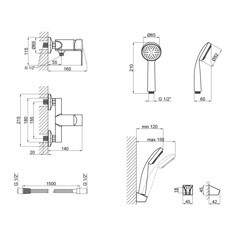 | Комплектация | Смеситель, душевой шланг, лейка для ручного душа. Кронштейн для ручного душа. Крепеж. |