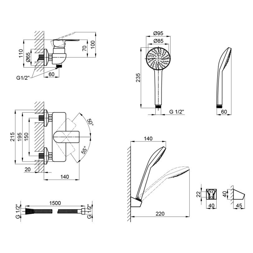 | Комплектация | Смеситель, лейка для ручного душа, душевой шланг, кронштейн для ручного душа. Крепежи. |
