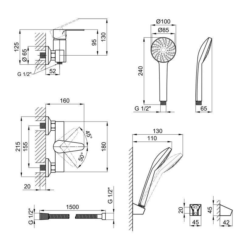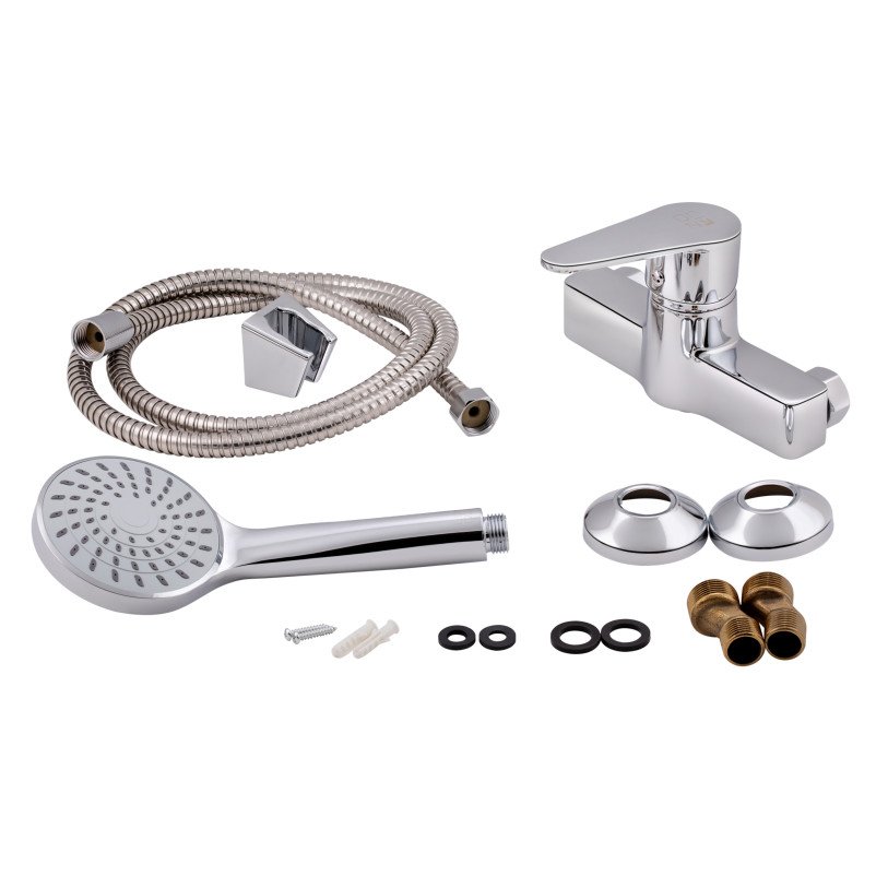 | Комплектация | Смеситель, кронштейн для ручного душа, лейка для ручного душа, душевой шланг, крепежи. |