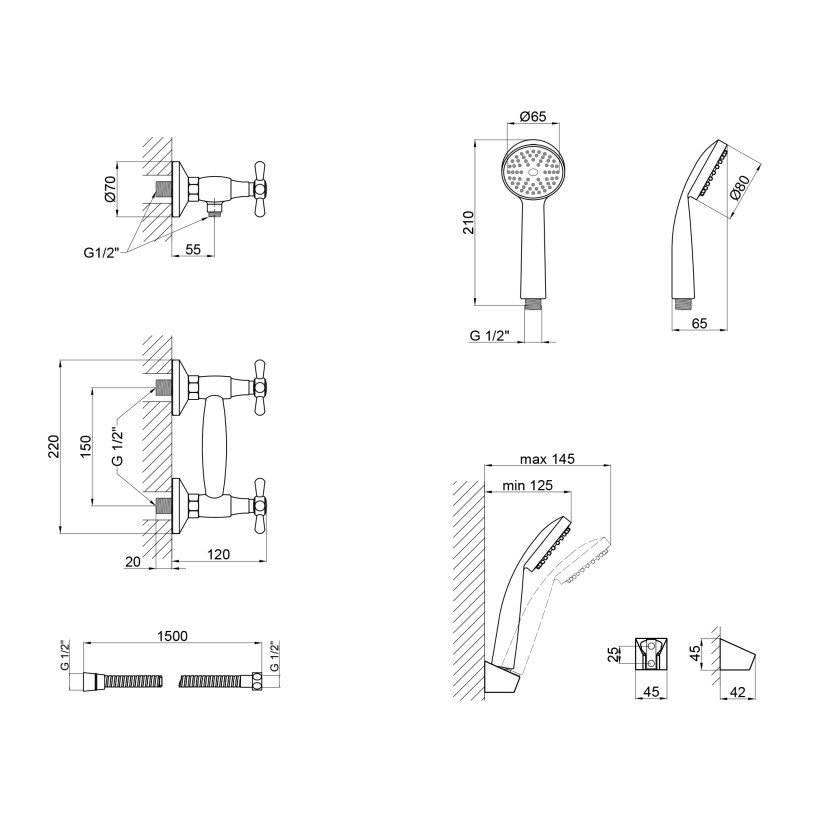 | Комплектация | Смеситель, лейка для ручного душа, душевой шланг, кронштейн, крепежи. |