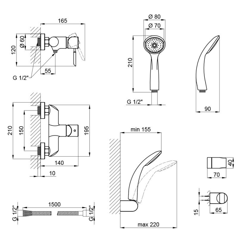 | Комплектация | Смеситель, лейка для ручного душа, душевой шланг, кронштейн, крепежи. |