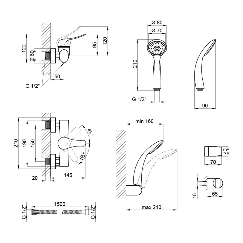 | Комплектация | Смеситель, лейка для ручного душа, душевой шланг, кронштейн, крепежи. |