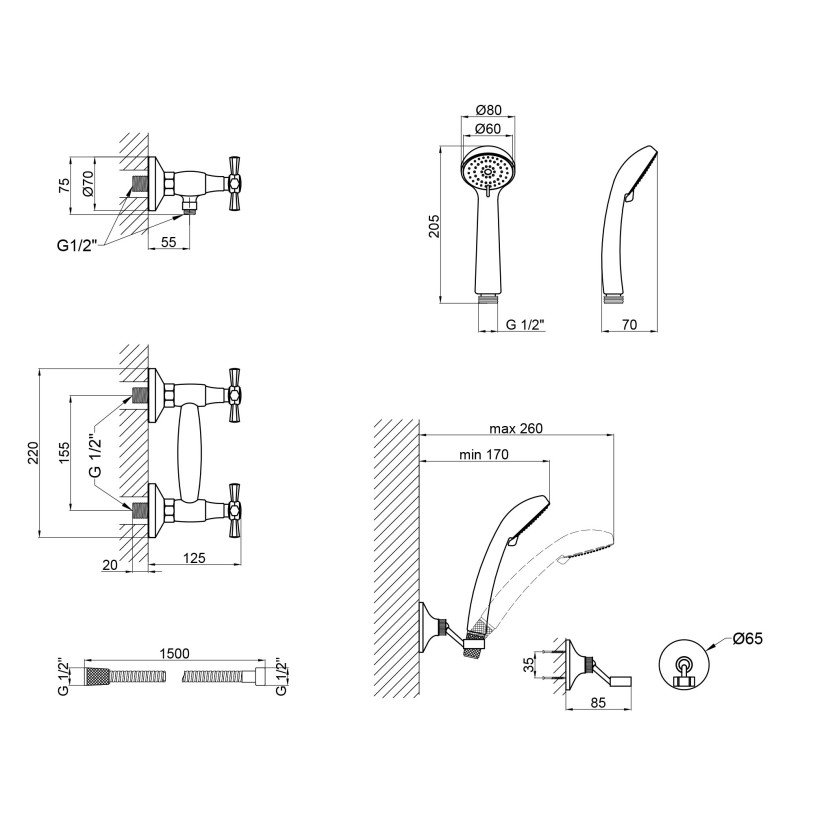 | Комплектация | Смеситель, лейка для ручного душа, душевой шланг, кронштейн, крепежи. |