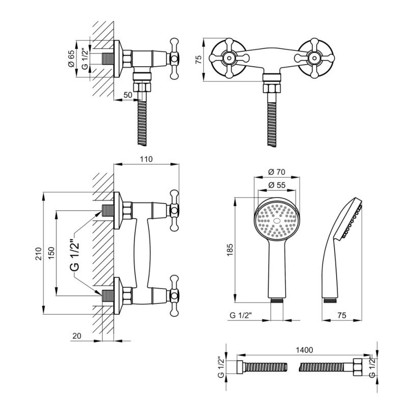 | Комплектация | Смеситель, лейка для ручного душа, душевой шланг, кронштейн, крепежи. |