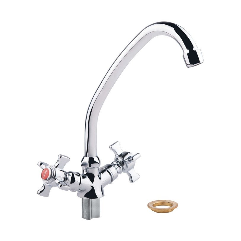 Смеситель для кухни GF (CRM)S-22-271AF изготовлен из силумина. Благодаря глянцевому хромированному покрытию имеет оригинальный внешний вид. Выполнен в классическом стиле, с вентильными ручками для переключения потока холодной и горячей воды.