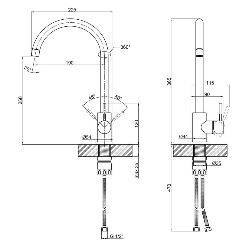 | Доп. характеристики | Длина гибкого подвода – 470 мм. |