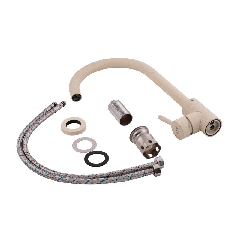 Смеситель для кухни Lidz (BEI) 12 32 015F-8 изготовлен из нержавеющей стали. Благодаря светло-бежевой матовой поверхности имеет оригинальный внешний вид. Выполнен в современном сдержанном стиле. Такой смеситель не только удобен и практичен, но и идеально дополнит интерьер кухни. После вытачивания изделия не проходят дополнительную шлифовку, незначительные царапины считаются нормой и не являются браком.