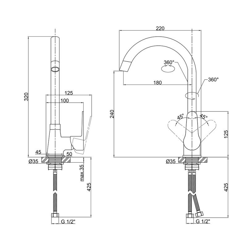 | Тип подводки | Гибкий |