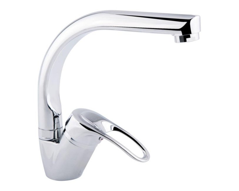 Смеситель для кухни с оригинальным поворотным изливом Lidz (CRM) 16 37 007 06 позволит набрать воду в высокую посуду, а благодаря глянцевой блестящей поверхности будет смотреться эстетично и подойдет под любой интерьер комнаты. Он монтируется в отверстие для смесителя на столешнице или на мойке врезным способом. Напор воды и ее температура регулируются поворотом рычага с отверстием в необходимое положение. Он имеет нанесенные маркировку Х+Г воды и фирменный логотип производителя.