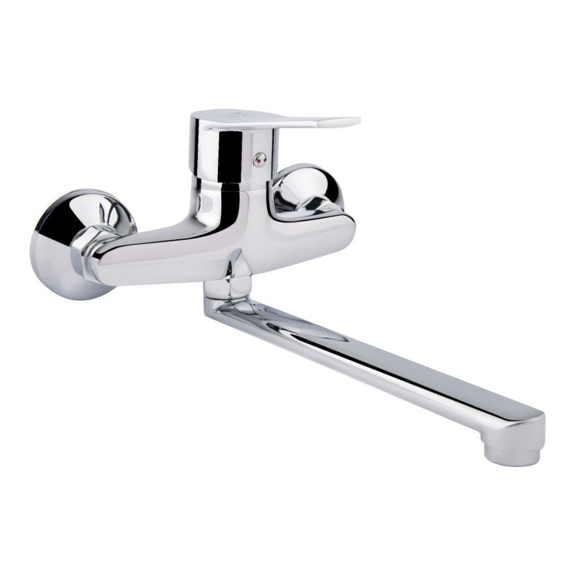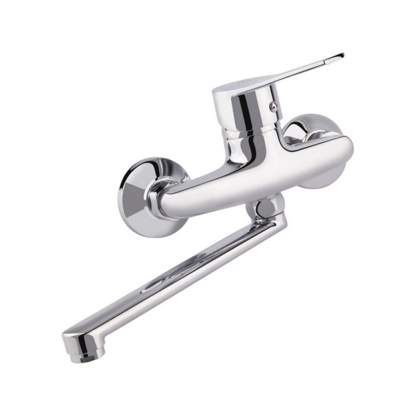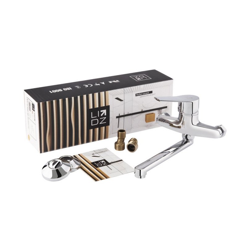 Смеситель для кухни с поворотным изливом Lidz (CRM) 40 87 009 благодаря глянцевой блестящей поверхности будет смотреться эстетично и подойдет под любой интерьер комнаты. Он монтируется на стену над кухонной чашей. Круглые декоративные розетки скроют погрешности установки на отделке. Напор воды и ее температура регулируются поворотом рычага в необходимое положение. Он имеет нанесенные маркировку Х+Г воды и фирменный логотип производителя.