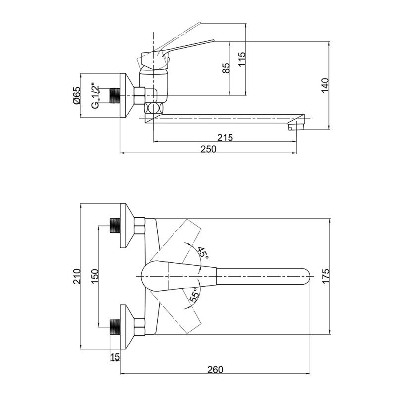 | Длина слива, мм | 215 |