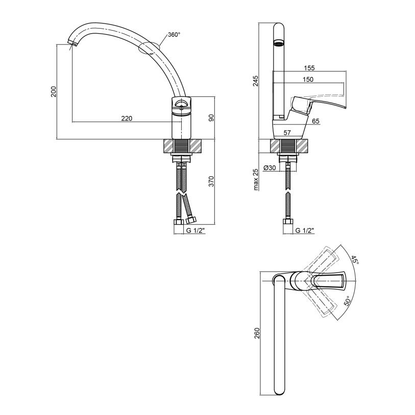 Смеситель для кухни Lidz (CRM) 44 80 008F-3