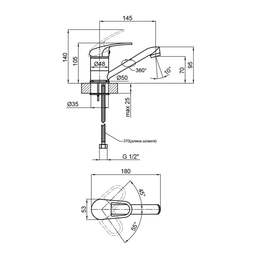 | Доп. характеристики | Длина гибкого подвода – 370 мм. |