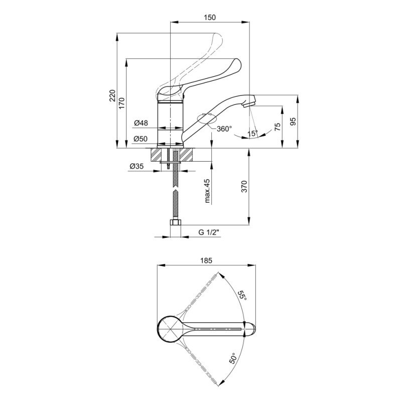 | Доп. характеристики | Длина гибкого подвода – 370 мм. |