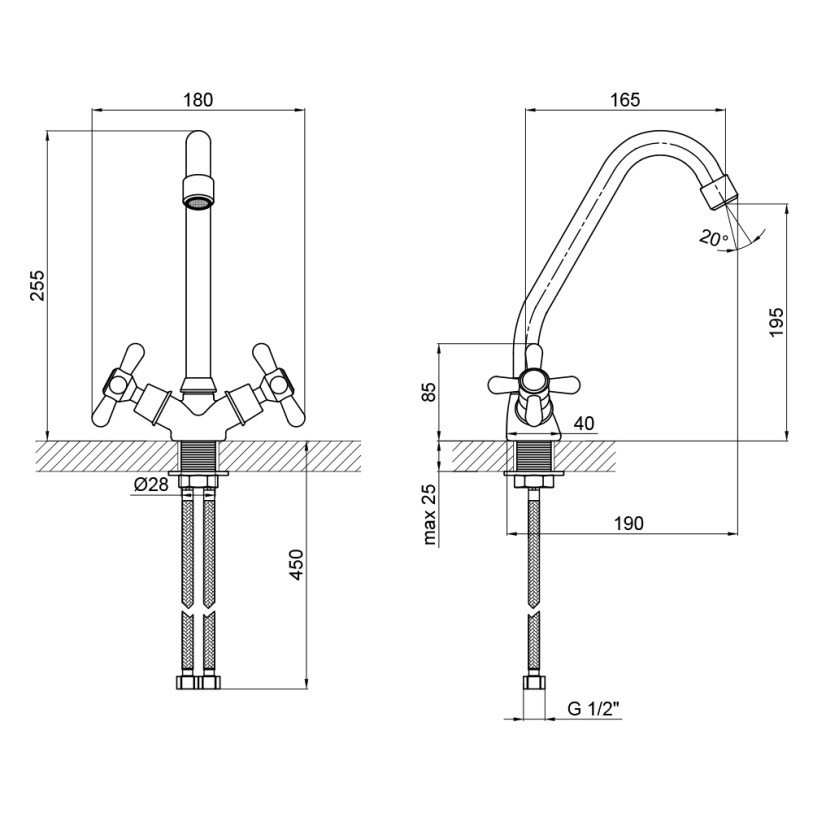 Смеситель для кухни Lidz Dominox 271FK двухвентильный LDDOM271FKCRM35536 Chrome