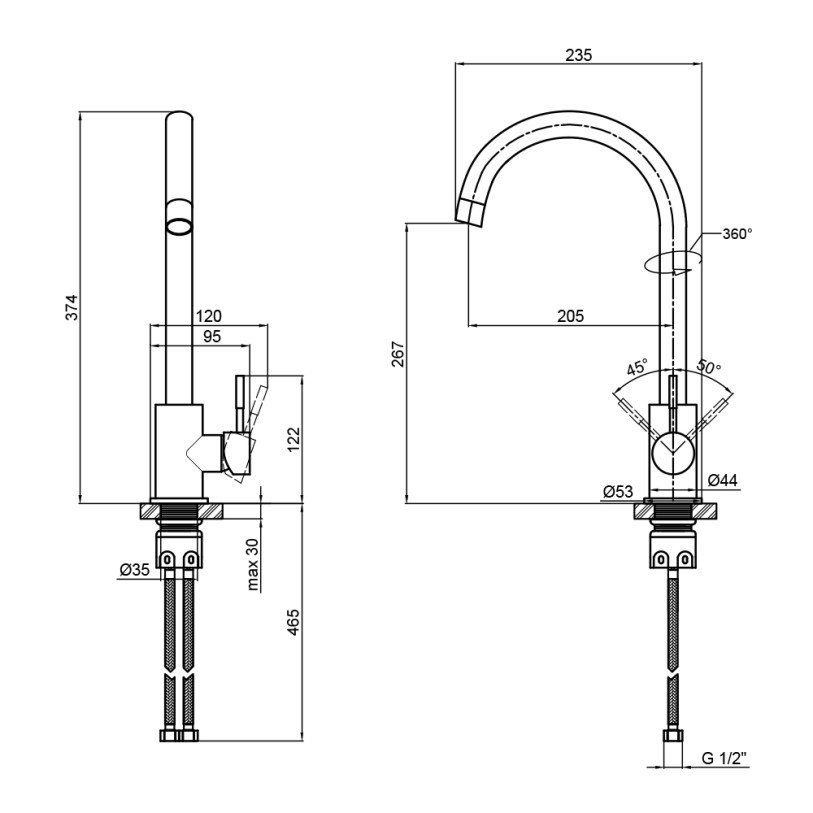 | Доп. характеристики | Длина гибкого подвода – 450 мм. |