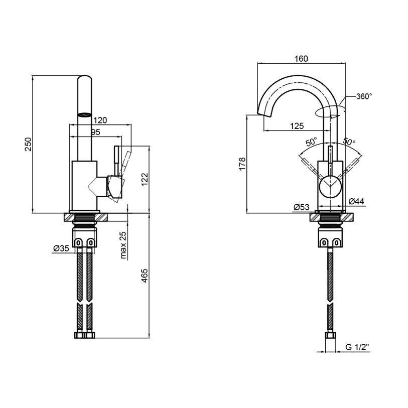 | Доп. характеристики | Длина гибкого подвода – 465 мм. |