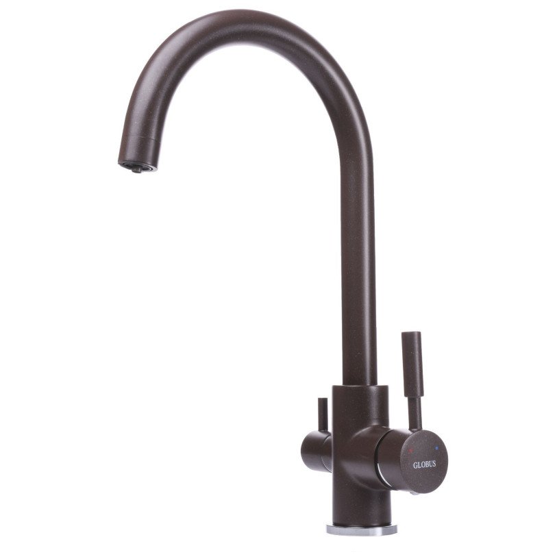 Смеситель GLLR-0333-6-MARONE Globus Lux комбинированный под ОСМОС на гайке, шоколад