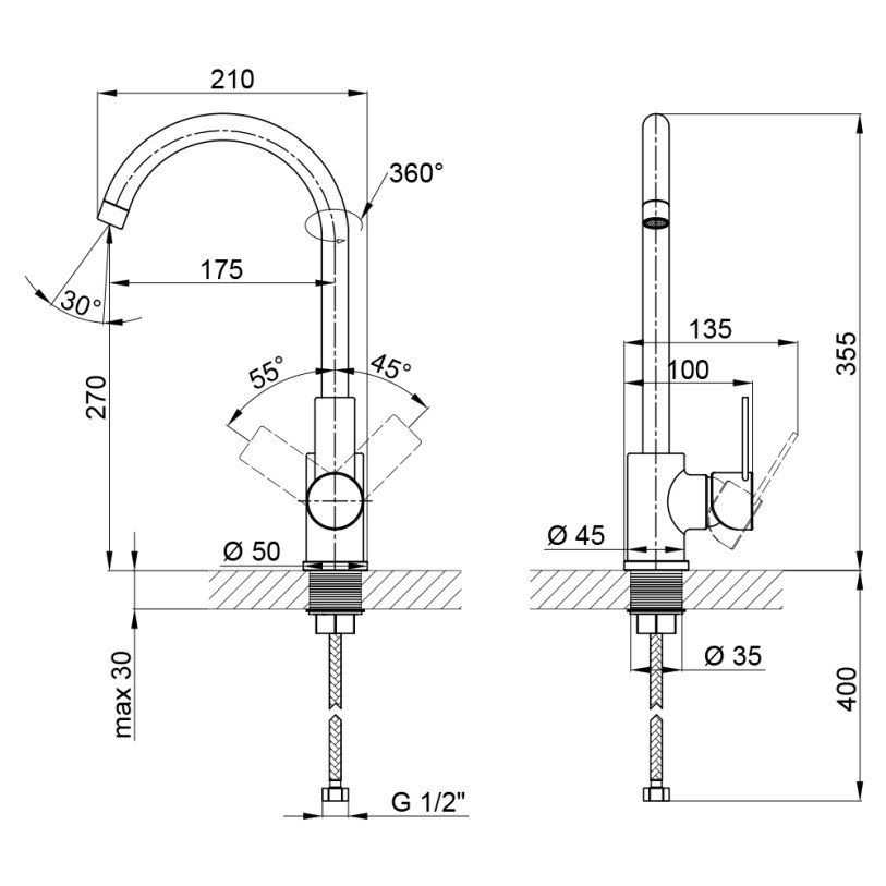 | Комплектация | Смеситель, гибкая подводка, крепеж. |