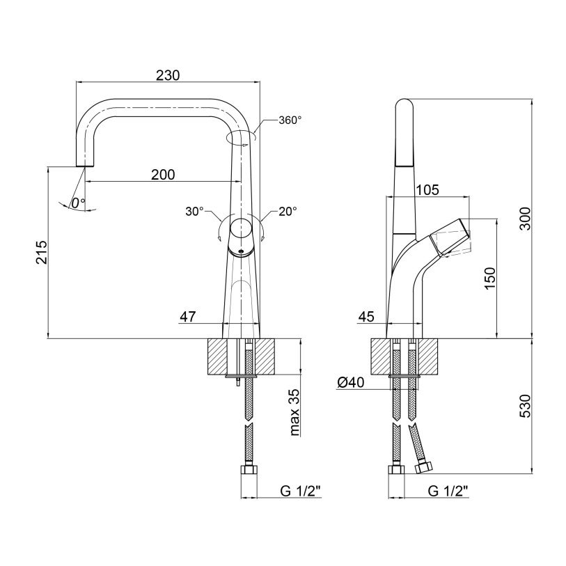| Комплектация | Смеситель, гибкая подводка, крепеж. |
