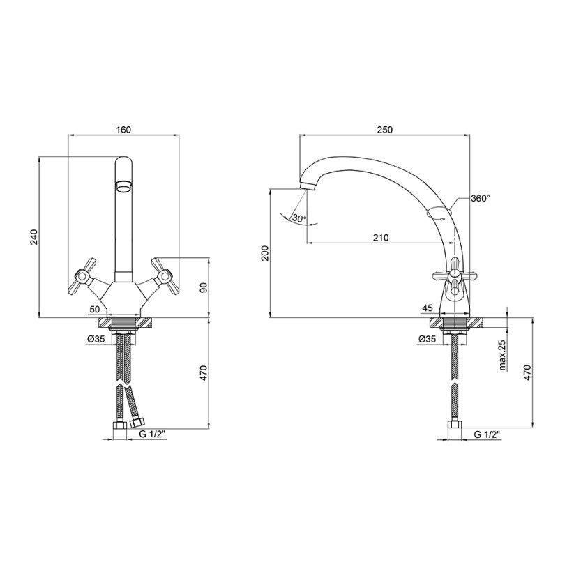 | Доп. характеристики | Длина гибкого подвода – 470 мм. |