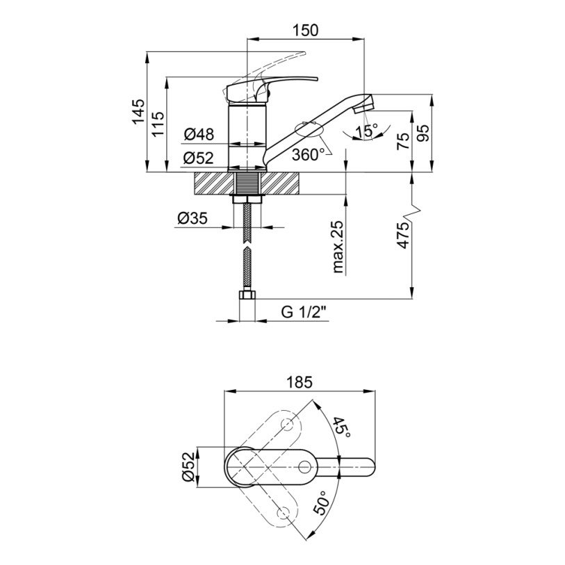 | Высота излива, мм | 75 |