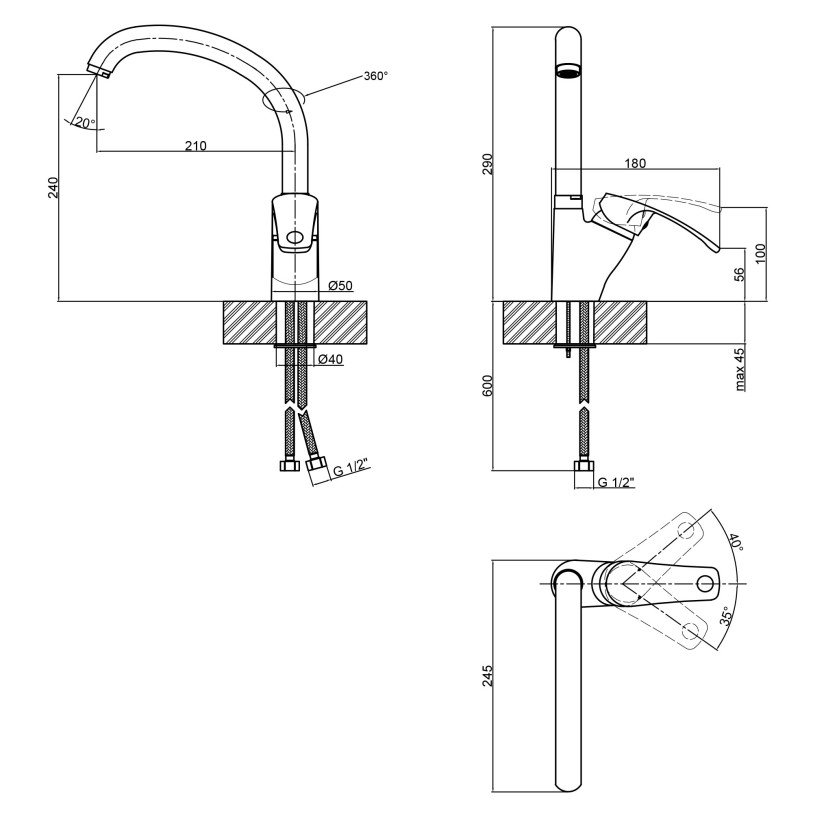 | Доп. характеристики | Длина гибкого подвода – 600 мм. |