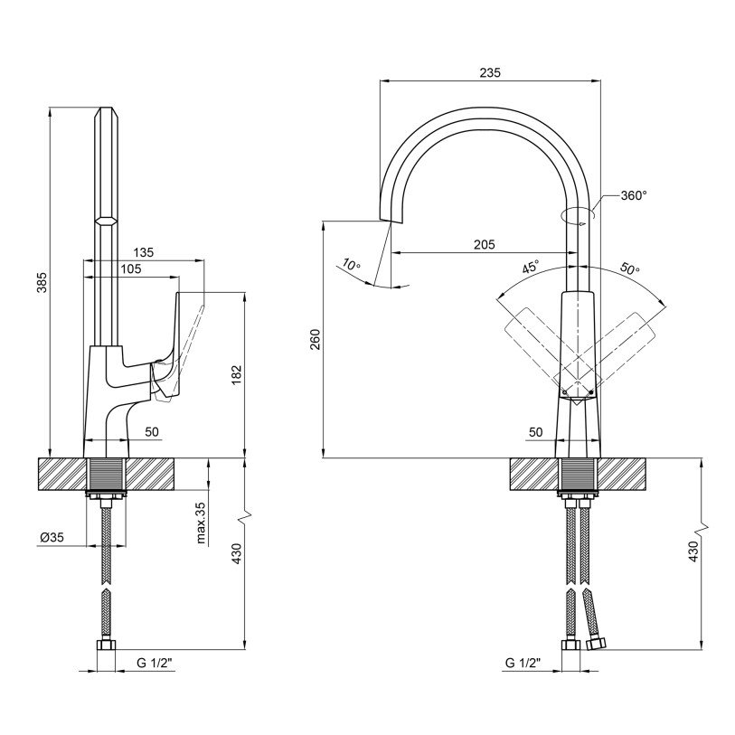 | Комплектация | Смеситель, гибкая подводка, крепеж. |