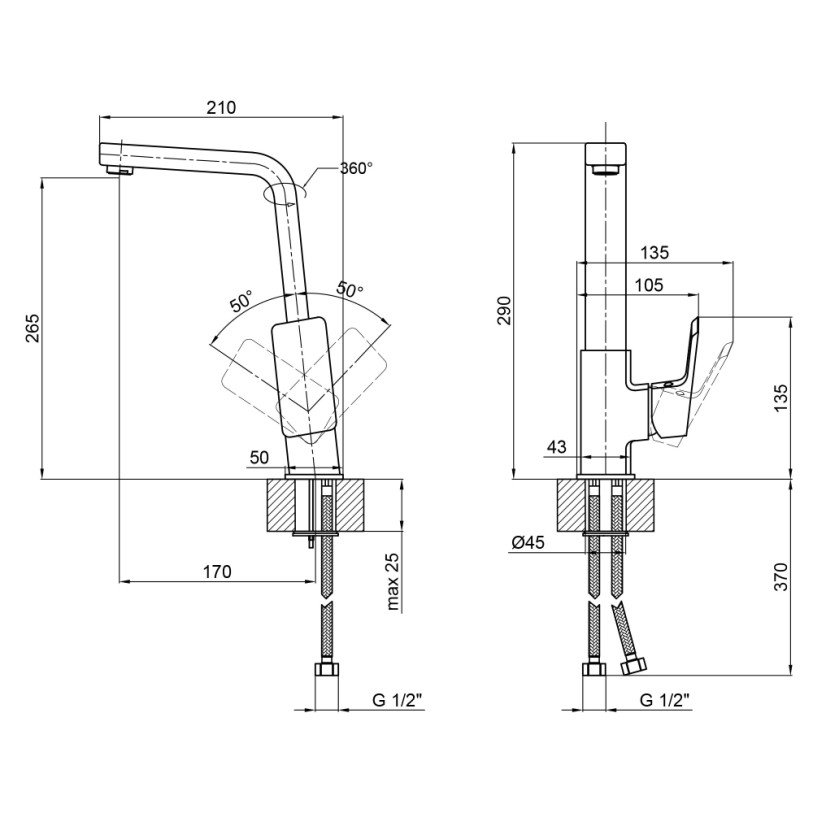 | Высота излива, мм | 265 |