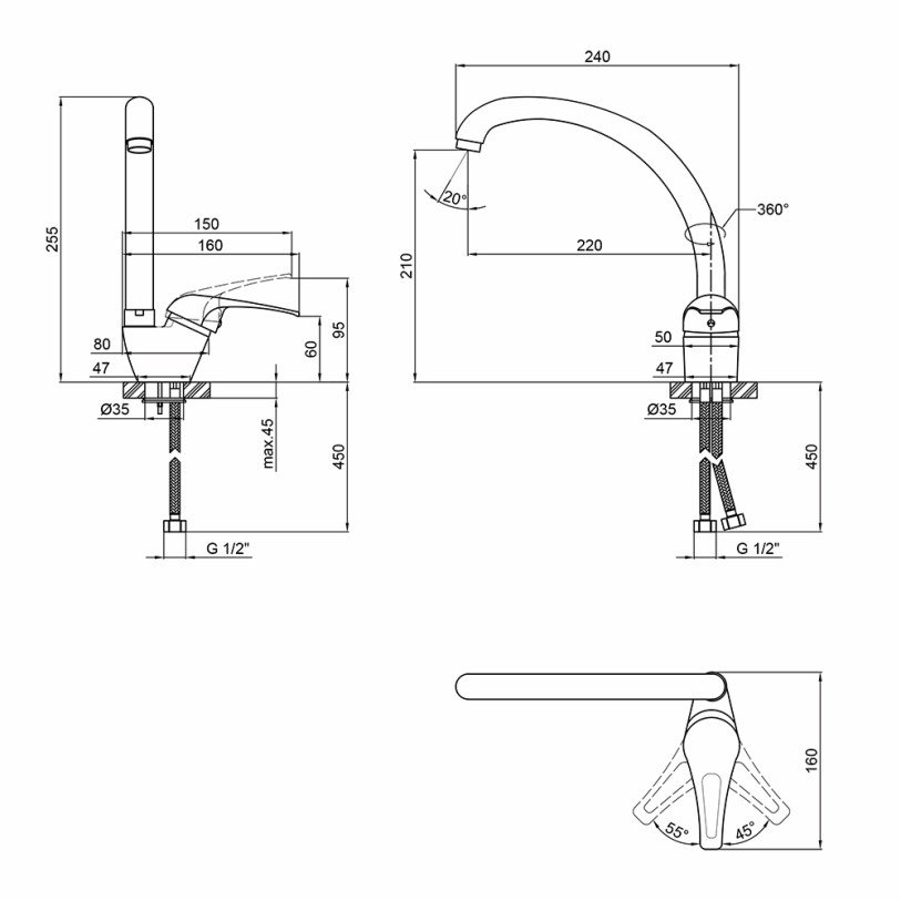 | Доп. характеристики | Длина гибкого подвода – 450 мм. |