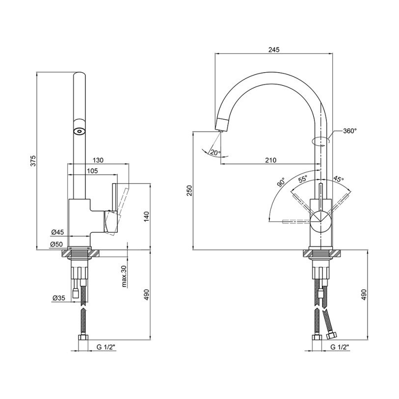 | Тип подводки | Гибкий |