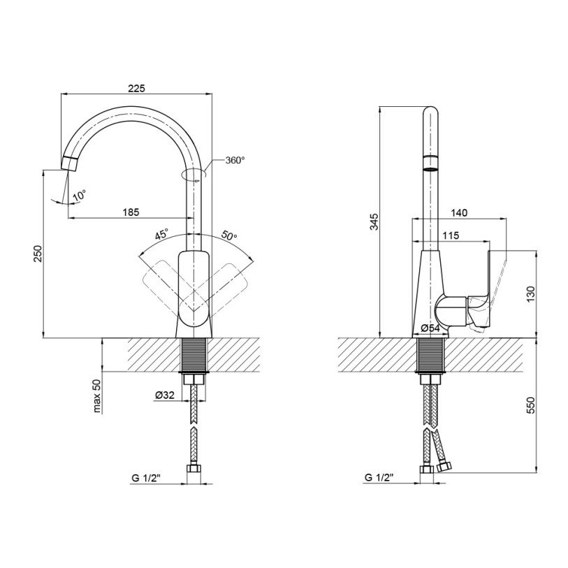 | Тип подводки | Гибкий |