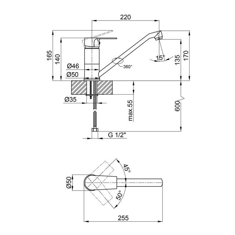 | Доп. характеристики | Длина гибкого подвода – 600 мм. |